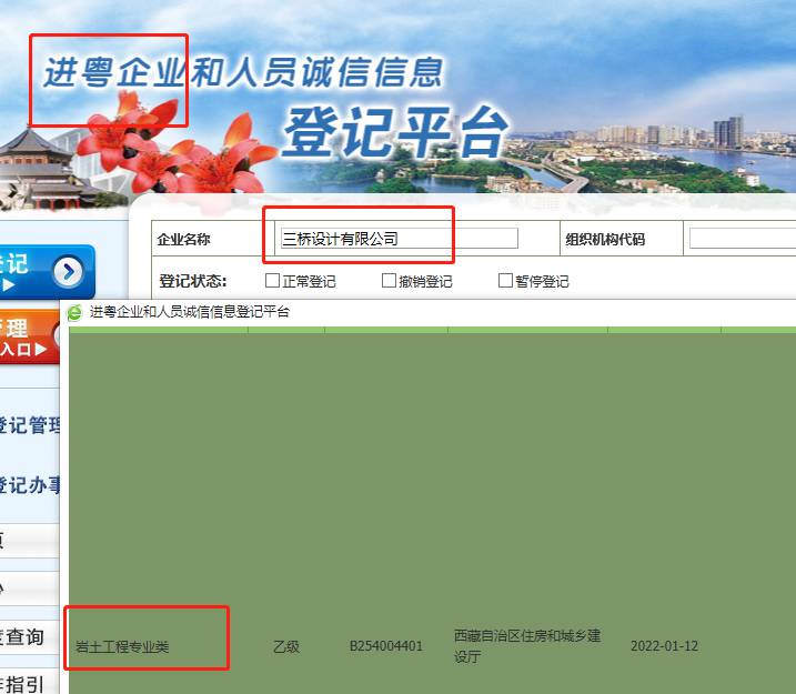 三桥自成立以来已经拥有了一批优良的资质,其中包括:建筑行业(建筑工程)乙级,市政行业(给水、排水、道路、桥梁工程)专业乙级,电力行业(送电、变电工程)专业乙级,商物粮行业(冷冻冷藏工程)专业乙级,环境工程设计(水污染防治工程)专项乙级,风景园林工程设计专项乙级,岩土勘察(岩土工程)乙级资质也拥有了一批优质的客户。现在我们勘察的备案也在进行中,最近我们完成了广东的勘察备案,接下来我们就可以用勘察资质在广东接项目啦!
